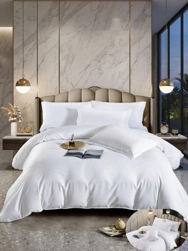 Experimentează rafinamentul hotelier cu acest set complet de 6 piese realizat din microfibră de înaltă densitate, cu imprimeu special tip damasc. Materialul inovator este fin la atingere, permite circulația aerului și oferă o rezistență remarcabilă la șifonare și decolorare.